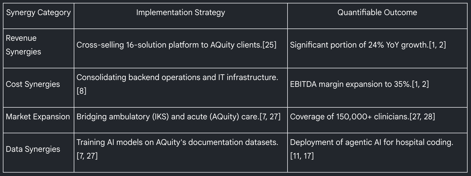 Remember that AQuity acquisition we talked about? IKS bought access to 500 massive health systems that were previously just buying single “point solutions” (like basic transcription). IKS has now stratified the top 50 of those legacy accounts. Their entire go-to-market engine is geared toward walking into those 50 hospitals and saying, “You already trust us with your clinical notes. Let us take over your entire revenue cycle and coding processes too.”