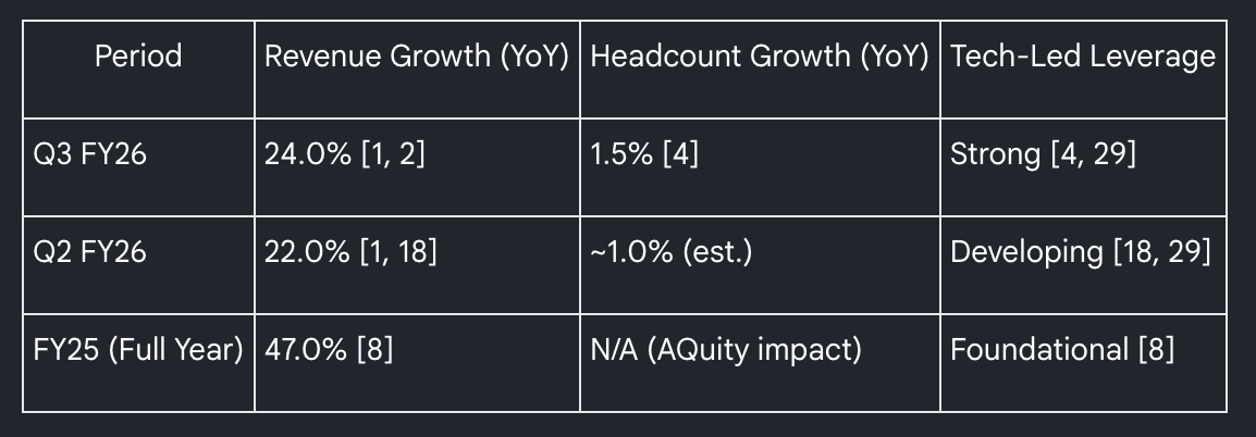 From an investment perspective, the importance of agentic AI lies in its ability to decouple revenue growth from headcount growth. Historically, IKS Health operated on a linear model common to the BPO industry. However, the Q3 FY26 results provided a definitive proof of concept for the firm’s non-linear pivot.